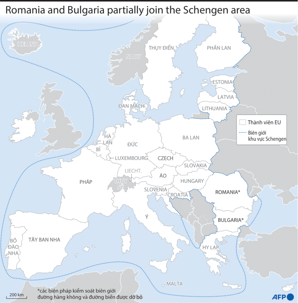 Khu vực Schengen ngay sau khi Bulgaria và Romania gia nhập một phần từ ngày 31/3/2024