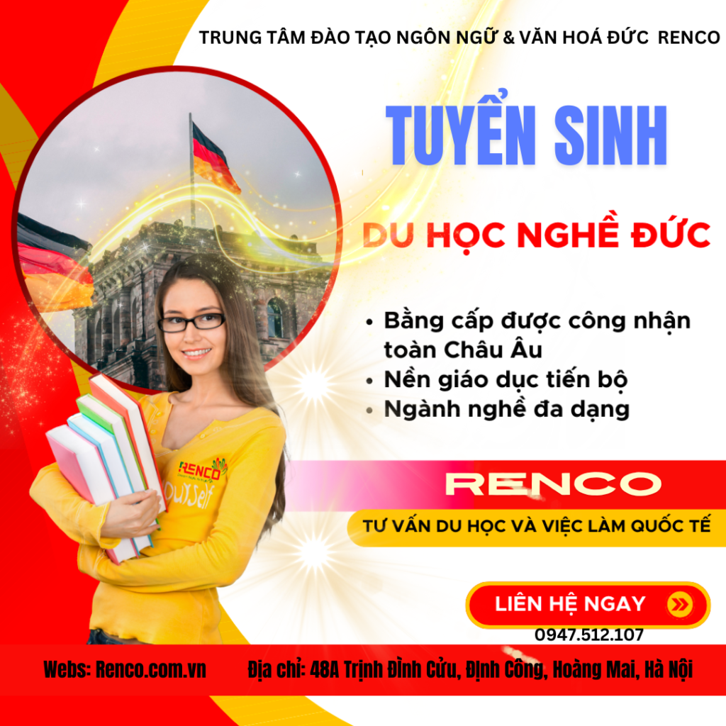 Nắm bắt thị hiếu của khách hàng, Trung tâm đào tạo ngôn ngữ & văn hoá Đức – Renco chính thức thông báo tuyển sinh Du học nghề Đức với vô vàn phúc lợi hấp dẫn, khai giảng mùng 6 tháng 10/2024.