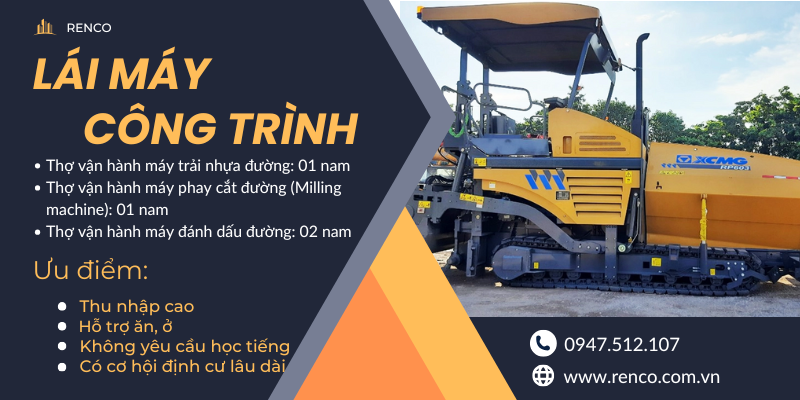 - Thợ vận hành máy trải nhựa đường: 01 nam