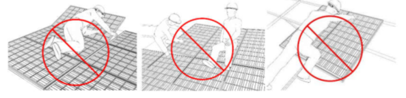 Trong quá trình thi công lắp đặt, không được phép thao tác dẫm, đạp, ngồi lên bề mặt tấm pin, Việc dẫm đạp lên tấm pin có thể gây ra hiện tượng micro-crack (nứt cell pin), gây ra hiện tượng hot spot, làm hỏng tấm pin.
