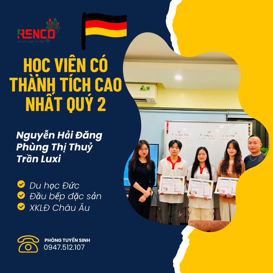* Đặc biệt, mọi học viên đều có thể nhận được danh hiệu này nếu có thành tích học tập tốt đấy!!! Renco mong rằng phần thưởng này sẽ là nguồn động lực nhỏ giúp các bạn học viên có thêm sức mạnh để tiếp tục nỗ lực học tập, phấn đấu trên con đường chinh phục nước Đức của mình.